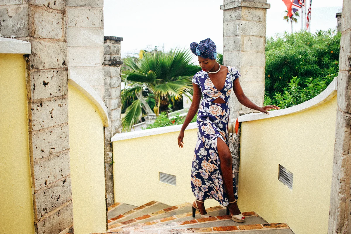 There's something about waking up with the view of the ocean from my bed that makes me just want to float. I could probably sit in bed for hours watching the bright blue water glimmer under the hot Bermudian sun. Inspired by the vibrant flowers, and poetic beaches, I pulled out an easy floral maxi for the Bermuda Fashion Festival International Designers Show. I wanted a fun, colorful, but regal look while keeping comfort in mind.